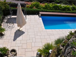 Nous posons tous types de dalles et de pavés pour vos terrasses, allées, escaliers extérieurs, bordures de jardin et abords de piscine….