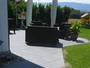 - Terrasse avec dalles en pierre reconstituée
